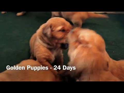 Golden Retriever puppies at play.